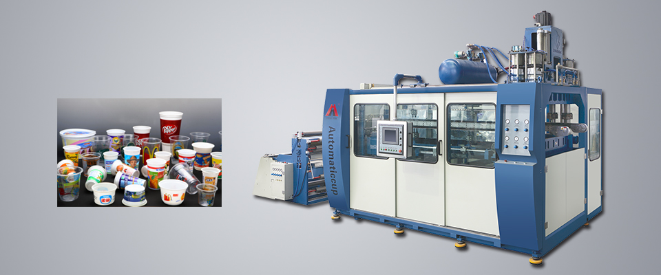 塑料制杯機是現在制造一次性塑料制品的理想設備,替換模具做一次性杯子/碗/方盒及塑料包裝制品,塑料片材放上去主動出杯子。 功能簡介:制杯機主要用于出產一次性的塑料容器:如水杯、飲料杯、果凍杯、酸奶杯、打包碗、便利面碗、塑料杯蓋子、方盒、水果托盤及.醫藥、輕工、紡織、旅行、玩具等有關塑料包裝制品。  特色:1、高效、節能、安全環保、制品合格率高。 2、整機集送片、加熱、拉伸、成型、切邊、吹杯、廢料收卷一次性完結,大大節省了勞作成本,提高了產品贏利。 3、運轉穩定、噪音小、鎖模力強、制品率高級長處。 4、整機由PLC觸摸屏操控,操作簡略便利。,凸輪運轉平穩堅固耐用,出產速度快,經過裝置不同模具可出產不同塑料制品,到達一機多用的意圖。 5.原材料習慣廣泛,如PS、PP、PVC、PET、ABS及其他塑料片材均可加工制造。